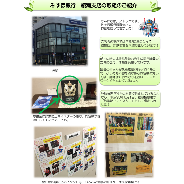 特殊詐欺根絶に向けた取組のご紹介~みずほ銀行綾瀬支店様~ |
